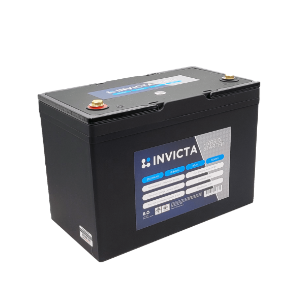 Invicta Hybrid 12V 200Ah Lithium starter Battery, 1500CCA, 3 Year Warranty. Invicta Hybrid Starter batteries are a dual-purpose starting and deep-cycle lithium solution that can withstand high-heat environments due to their heat-resistant technology. Utilising premium A123 pouch cells used by Mercedes and BMW, it can output up to 1600CCA depending on the product. As an added feature, a backup Jump Start function has been added so users can be confident that they will be able to run their 12V accessories without sacrificing starting ability.