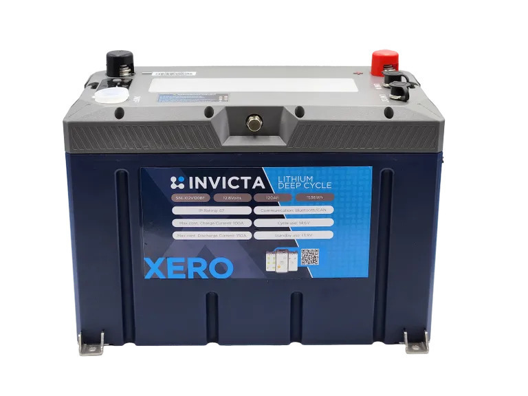 Invicta Xero 12V 120Ah Lithium Battery with Bluetooth, 7 year warranty. Invicta Xero, the latest addition to Invicta, is an advanced lithium battery designed to meet the increasing demands of emerging applications and safety requirements in recreational and industrial industries. The Invicta Xero range includes significant upgrades while still utilising tried-and-tested technology that users trust day in and day out.
