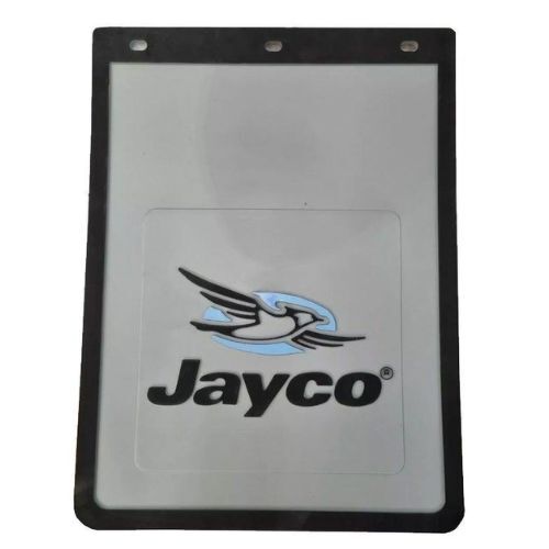 Jayco Mud Flap 300mm x 405mm - Grey, 1 Year Warranty. These Genuine Jayco Mud Flaps are a great way to dress up your Jayco or the perfect replacement should one have made its own way elsewhere during your last trip. These mudflaps are made from heavy duty rubber sized at 300mm wide and 405mm long and feature the famous flying Blue Jay to help deflect mud, dirt and rocks away from your pride and joy.