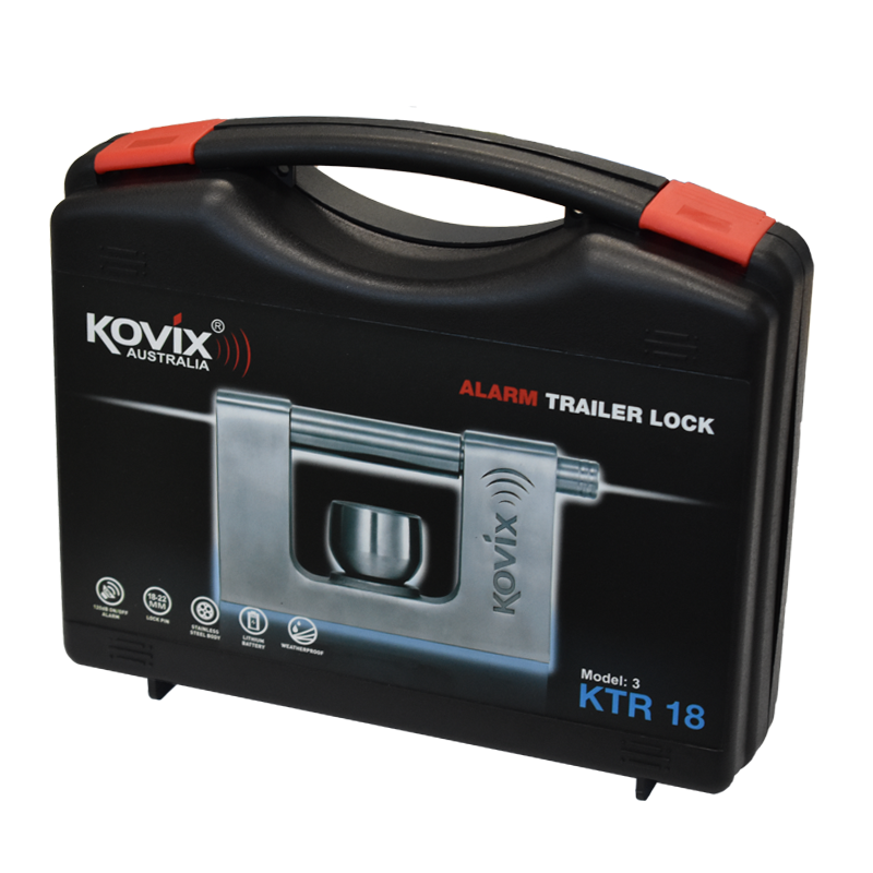 Designed by Kovix Australia the heavy duty KTR-18 alarmed trailer lock is made from 304 grade stainless steel. Resistant to impact, drilling and cutting this ultra-strong trailer lock features an 18mm pin with an anti-cutting sleeve.