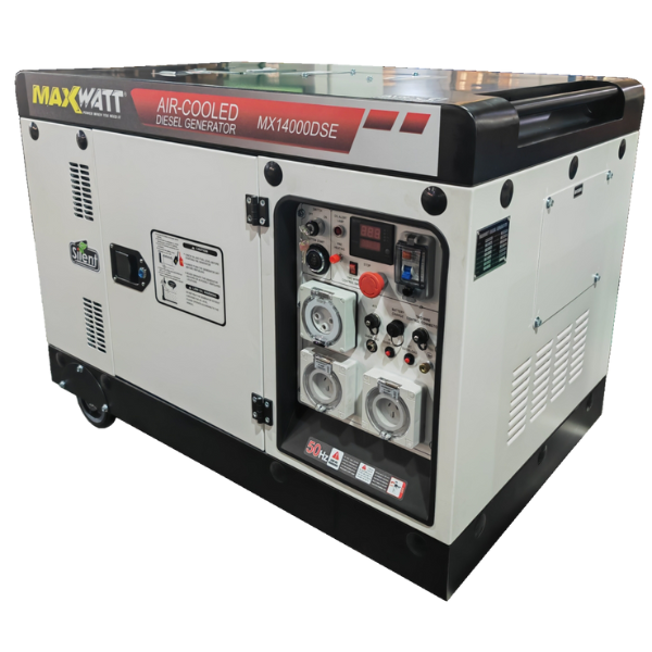 MaxWatt 13kVA Diesel Generator with Electric Start & 2 Wire Auto Start, 2 Year Warranty. The Maxwatt range of generators has been manufactured using only high-quality components and designed to last in the toughest conditions. The MX14000DES diesel generator provides you with clean and stable power output and is safe for all your electronic devices including TVs, computers, and mobile phones. It is the perfect power solution for the job site, solar back up for off grid solar systems or if you are just using it for backup power at home or office.