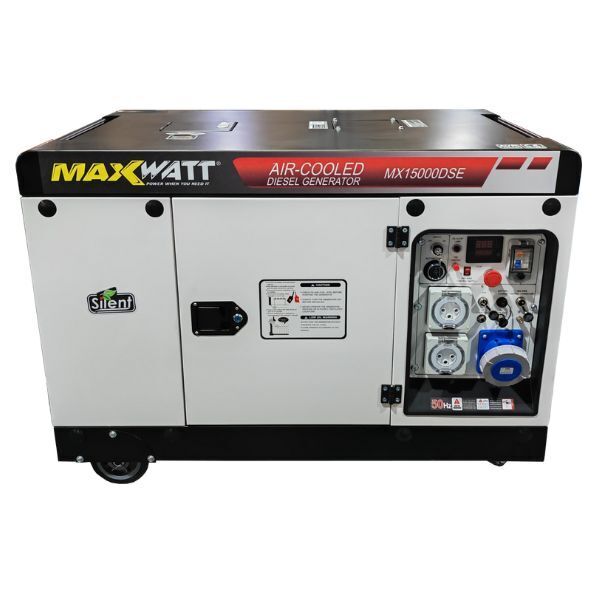 MaxWatt 15kVA Diesel Generator with Electric Start & 2 Wire Auto Start, 2 Year Warranty. The Maxwatt range of generators has been manufactured using only high-quality components and designed to last in the toughest conditions. The MX15000DES diesel generator provides you with clean and stable power output and is safe for all your electronic devices including TVs, computers, and mobile phones. It is the perfect power solution for the job site, solar back up for off grid solar systems or if you are just using it for backup power at home or office.