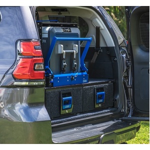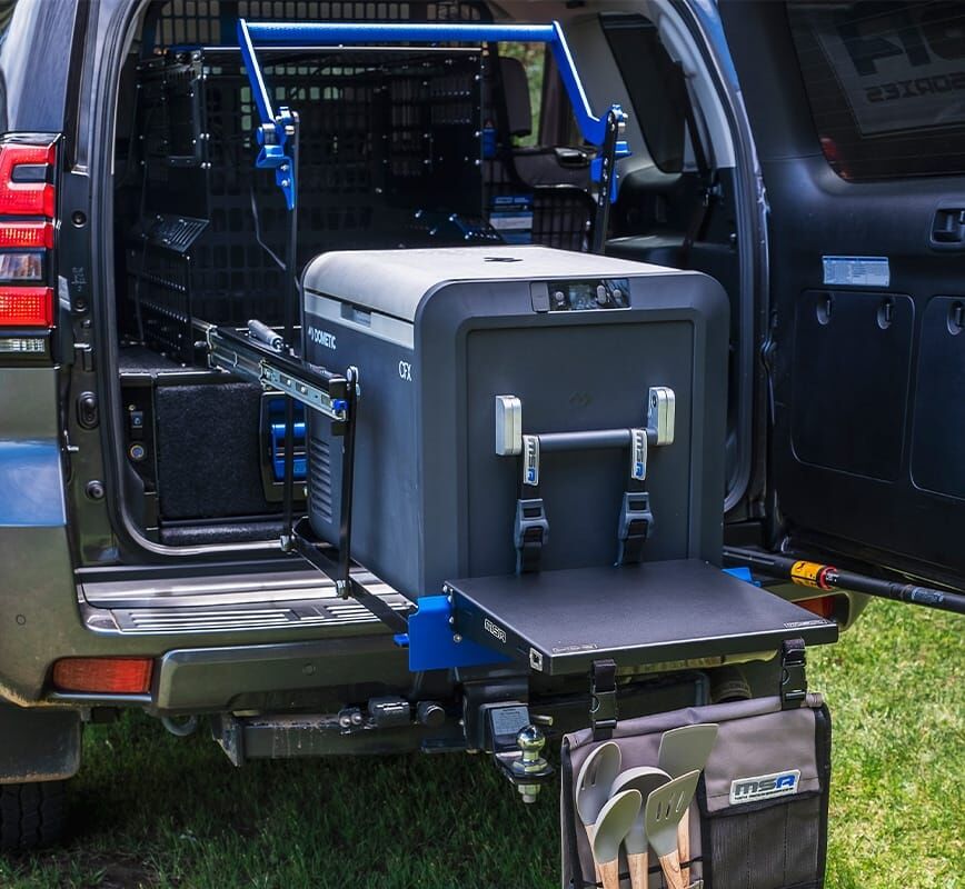 The unique MSA 4X4 blue anodised faceplate provides a tough, durable and easily recognisable finish. The frame is constructed from powder-coated steel and the compact design maximises storage space within the vehicle. The MSA 4X4 Drop Slideâ„¢ is engineered to be easily installed and the pre-drilled tray holes provide anchor points for most popular fridges. The lock-in, lock-out safety feature locks the slide in its intended position while travelling, preventing potential damage to the fridge and vehicle.