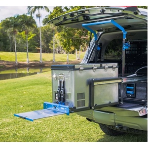 The Drop SlideTM with Table features the unique, easily recognisable, MSA 4X4 blue anodised faceplate. Creating a tough, durable and sleek finish, it is sure to stand out from its competitors. The slide also has a powder-coated steel frame construction for more durability when in use. The lock-in, lock-out safety feature locks the slide in its intended position while travelling, preventing potential damage to the fridge and vehicle.