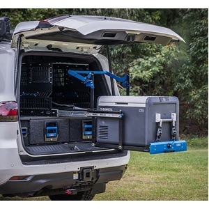 Perfect for preparing a quick meal for the family when on the road. The Drop SlideTM lowers 30 centimetres while extending over the tailgate of the vehicle, allowing easy access to a fridge, toolbox or generator. The slide remains in a horizontal position when lowering, avoiding any contact with the vehicle.