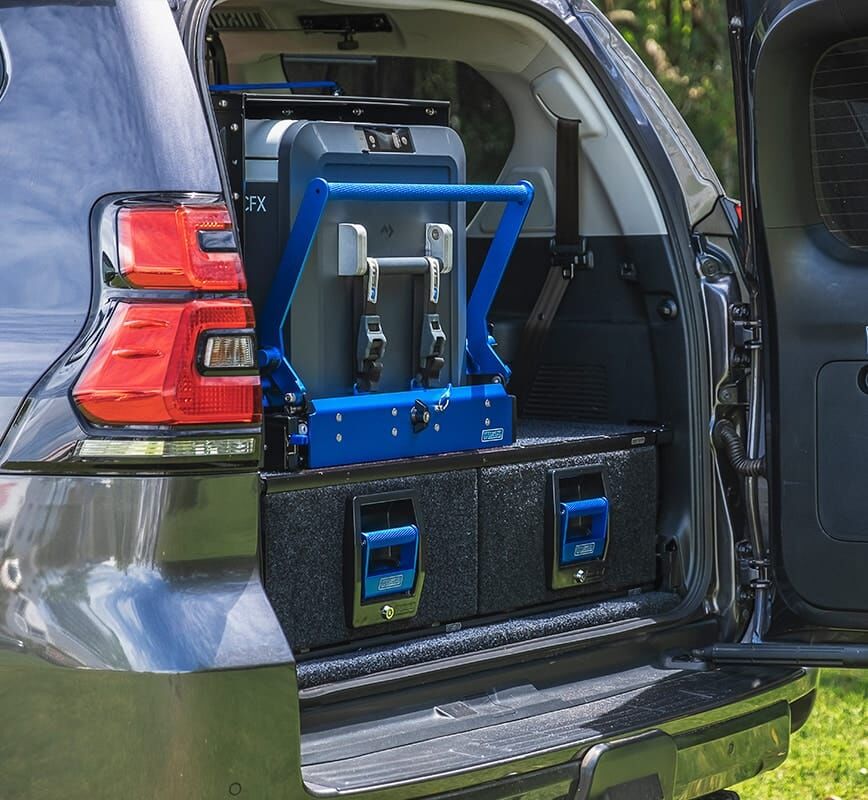 The unique MSA 4X4 blue anodised faceplate provides a tough, durable and easily recognisable finish. The frame is constructed from powder-coated steel and the compact design maximises storage space within the vehicle. The MSA 4X4 Drop Slideâ„¢ is engineered to be easily installed and the pre-drilled tray holes provide anchor points for most popular fridges. The lock-in, lock-out safety feature locks the slide in its intended position while travelling, preventing potential damage to the fridge and vehicle.