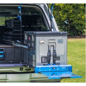 The Drop SlideTM with Table features the unique, easily recognisable, MSA 4X4 blue anodised faceplate. Creating a tough, durable and sleek finish, it is sure to stand out from its competitors. The slide also has a powder-coated steel frame construction for more durability when in use. The lock-in, lock-out safety feature locks the slide in its intended position while travelling, preventing potential damage to the fridge and vehicle.