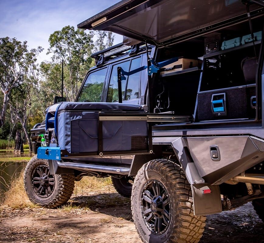The unique MSA 4X4 blue anodised faceplate provides a tough, durable and easily recognisable finish. The frame is constructed from powder-coated steel and the compact design maximises storage space within the vehicle. The MSA 4X4 Drop Slideâ„¢ is engineered to be easily installed and the pre-drilled tray holes provide anchor points for most popular fridges. The lock-in, lock-out safety feature locks the slide in its intended position while travelling, preventing potential damage to the fridge and vehicle.
