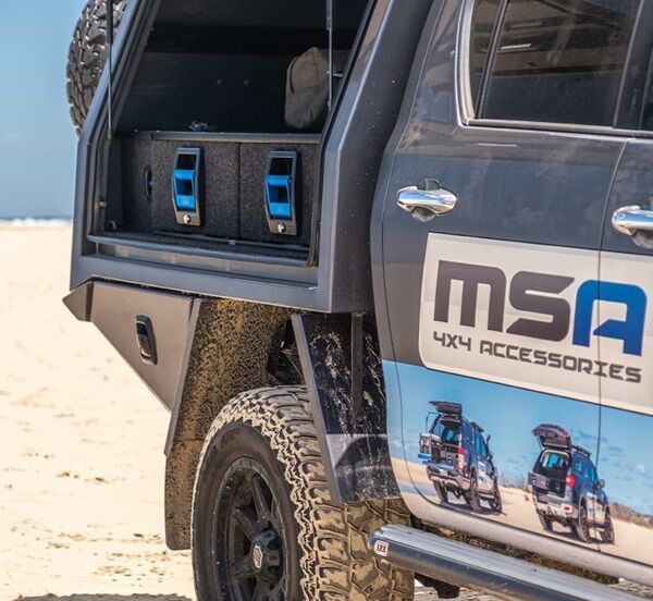 MSA 4X4’s Storage Drawer Systems are designed with a patented slide technology Now fitted with fully sealed, stainless steel bearings with Nylon rollers as standard. Offering a quieter, smoother operation under heavy loads and saving up to 3kg per Drawer Module. The entire drawer extends further from the frame, allowing 100% access to the drawers. No more hard-to-reach items at the back! MSA 4X4’s Storage Drawer Systems are constructed from aluminium and have anodised aluminium components. Super-strong, lightweight and comes with stainless steel fasteners used throughout for a rust-free, corrosion resistance lifetime of use.