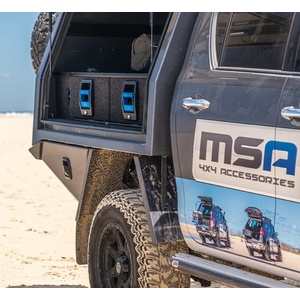 MSA 4X4’s Storage Drawer Systems are designed with a patented slide technology Now fitted with fully sealed, stainless steel bearings with Nylon rollers as standard. Offering a quieter, smoother operation under heavy loads and saving up to 3kg per Drawer Module. The entire drawer extends further from the frame, allowing 100% access to the drawers. No more hard-to-reach items at the back! MSA 4X4’s Storage Drawer Systems are constructed from aluminium and have anodised aluminium components. Super-strong, lightweight and comes with stainless steel fasteners used throughout for a rust-free, corrosion resistance lifetime of use.