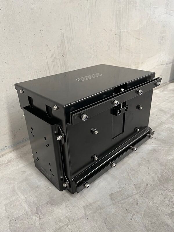 The neat and compact design makes a perfect addition to an MSA 4X4 Storage Drawer System. It can be positioned out of sight under side wing kits yet still easily accessible or fitted universally inside a trade canopy. Available in two sizes, Large to fit standard N70, AGM or Lithium batteries and Slimline for smaller Lithium batteries.