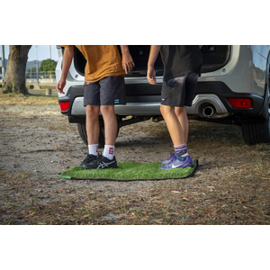 When you’re finished using your artificial grass mat, simply shake, rinse and store out of direct sunlight to avoid overheating. For easy storage, roll up and secure with the handy velcro strap.