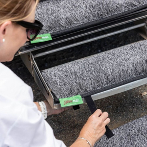 TRIP OR SLIP HAZARD: All mats and floor rugs can have the opportunity to be a trip or slip hazard. muk mat blades are made from recycled plastics, and plastic does have the potential to be slippery, especially when wet. Please take care and ensure you minimise the risk of falls by securely fastening your mat and or using a non-slip mesh underneath. When using caravan stairs, risks of falls or slips can be reduced by ascending and descending slowly and holding onto a steady object.