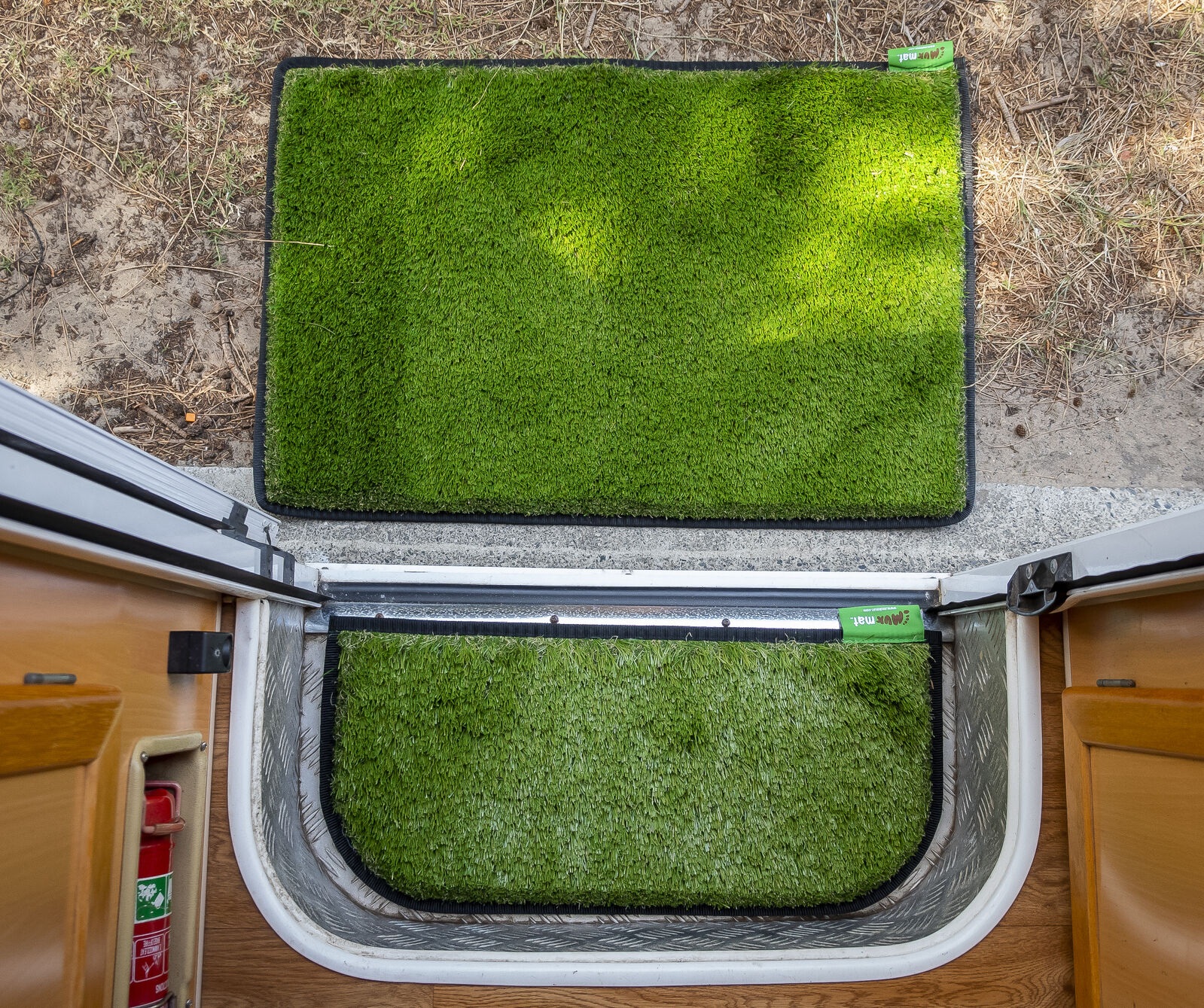 The muk mat also bears maximum water resistance capabilities so you can leave it outside on your caravan step all night long.