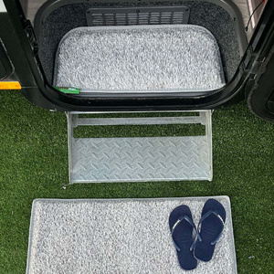 The Rounded Caravan Step is paired perfectly on the ground with a Large muk mat in Light Grey.