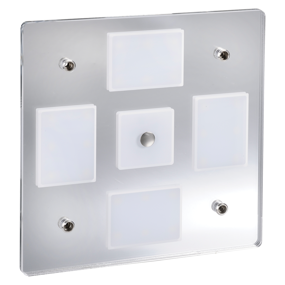 Narva 10-30V LED Square Interior Lamp Touch Switch & Dimming, 1 Year Warranty.  Made popular in Europe, these interior ceiling lamps offer modern styling and can be used as feature in caravans and motor homes. All are low profile and surface mounted, making them easy to install with concealed screws and covers. Some of the range of lamps include a touch switch with blue night light allowing them to be dimmed to the desired output.