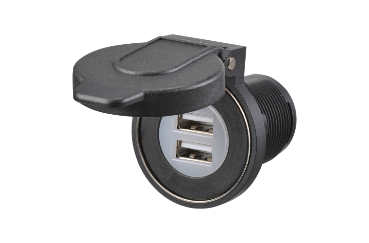 Narva 12-24V Heavy-Duty Dual USB Socket with Magnetic Dust Cover, 1 Year Warranty. Features dustproof & waterproof cover and heavy-duty construction ideal for both internal or external fitment.