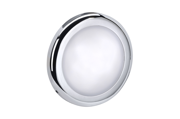 Narva 12V 70mm Chrome Interior Lamp, 1 Year Warranty. Made popular in Europe, these interior ceiling lamps offer modern styling and can be used as feature in caravans and motor homes. All are low profile and surface mounted, making them easy to install with concealed screws and covers. Some of the range of lamps include a touch switch with blue night light allowing them to be dimmed to the desired output.