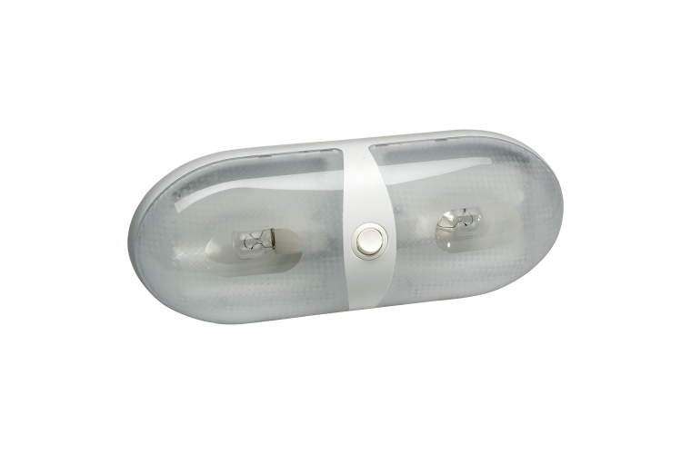 Narva 12V Dual Interior Dome Lamp, 1 Year Warranty. Bright, wide-angle light output 2 x 21CP (16W) globe, pre-wired and surface mounted.