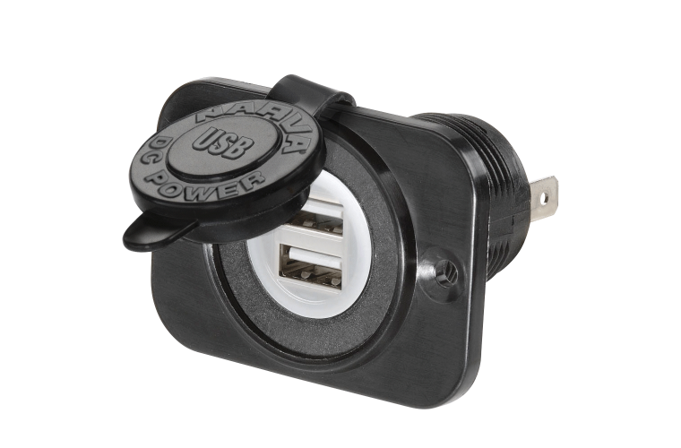 Narva 5V Heavy-Duty Dual USB Socket, 1 Year Warranty. Can be installed with or without a mounting panel.