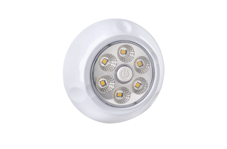 Narva 9-33V LED Interior Swivel Lamp, 1 Year Warranty. A compact and modern styled interior light utilising six powerful L.E.Ds which produce a smooth spread of crisp white light. Ideal for campers, caravans and mobile homes. Allows easy beam adjustment with 350° swivel and 35° tilt.