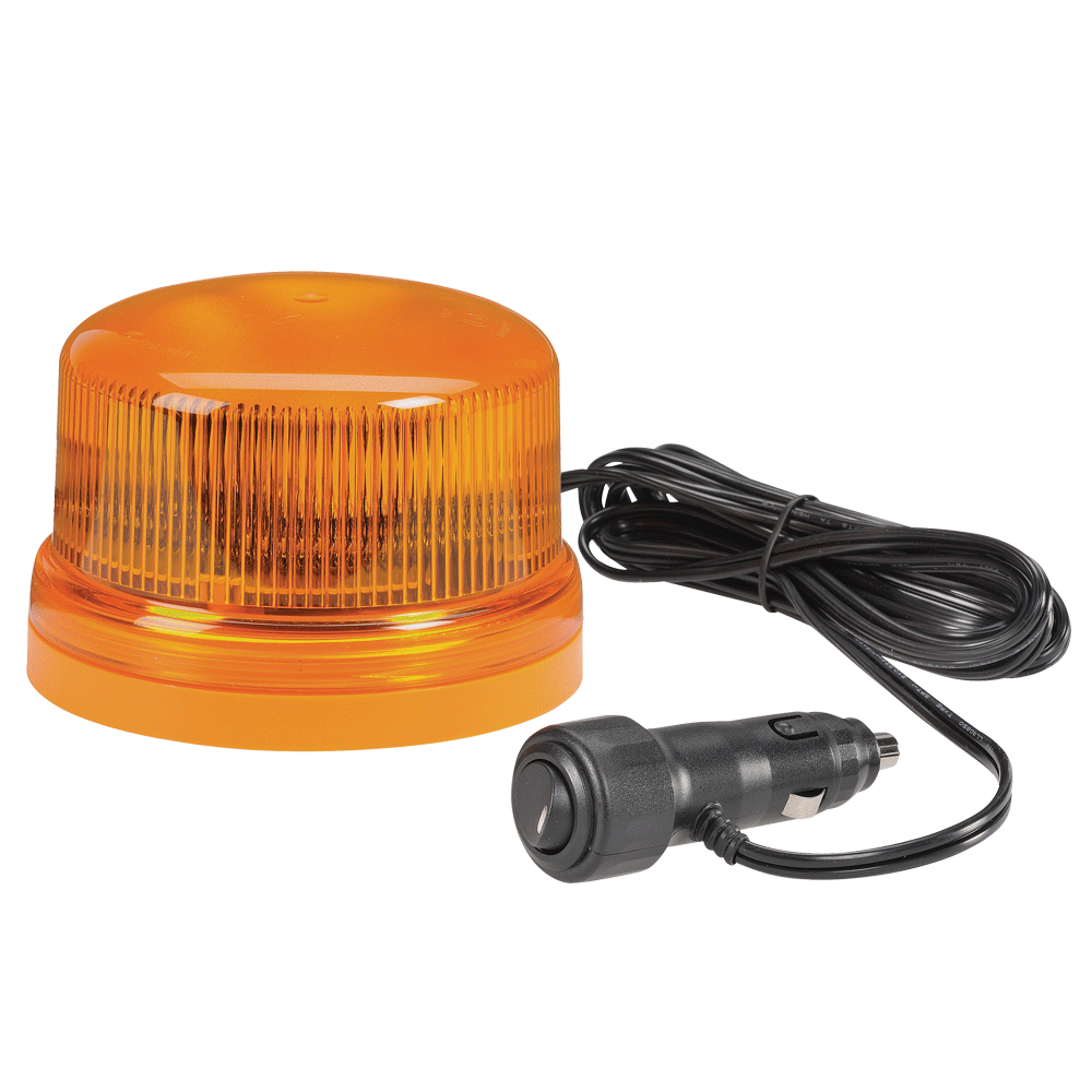 Narva Amber 'Eurotech' Low Profile LED Strobe/Rotator Light, 6 Selectable Flash Patterns, Orange Base, 1 Year Warranty. Dual voltage circuitry, polycarbonate lens, vibration resistant, solid state circuitry & fully sealed to IP65, SAE Class 1 light output, reverse polarity protected. Magnetic base includes a rubber pad and 3m straight lead with cigarette lighter plug and Off/On switch.