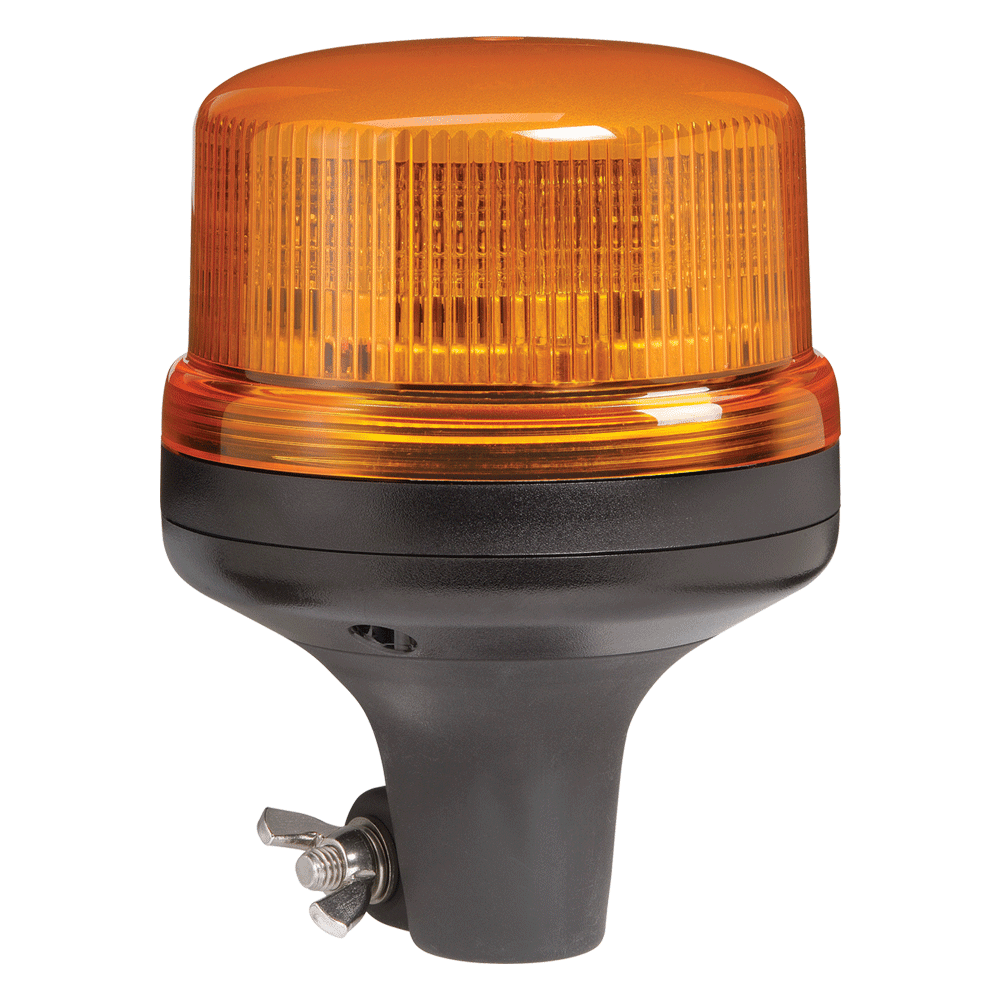 Narva Amber 'Eurotech' Low Profile LED Strobe/Rotator Light, Flexible Pipe Mount, 1 Year Warranty. Dual voltage circuitry, polycarbonate lens, vibration resistant, solid state circuitry & fully sealed to IP65, SAE Class 1 light output, reverse polarity protected.