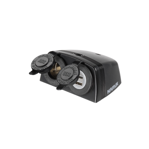 Narva Heavy-Duty Surface Mount Accessory / Dual USB Socket, 1 Year Warranty.