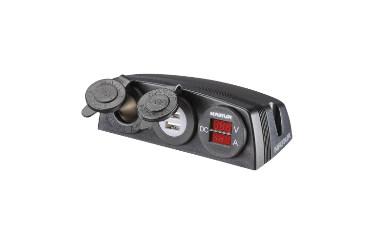 Narva Heavy-Duty Surface Mount Acce, 1 Year Warrantyssory Socket & 12/24V DC LED AMP & Volt Meter, 1 Year Warranty. Easy to read L.E.D Volt and Amp meters display accurate battery voltage and amperage draw for quick reference.