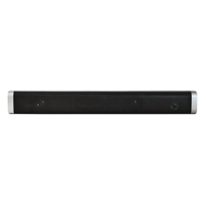 The two tweeters & woofer speaker system with improved sound quality generates strong bass sounds not normally found in such a compact system. Its unique 12V power input makes it easy to enhance the sound of your TV. Simply plug the Bluetooth Soundbar into a power source and connect to the TV using the headphone Jack. The included brackets are designed to suit many TVs, and allow you to mount the Soundbar to the TV or place the rubber feet on a flat surface such as a shelf or cabinet.