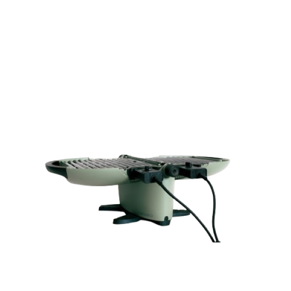 The electric barbecue is delivered in a recyclable gift box, complete with cables and plug. The box also contains drip trays, a shoulder strap and a manual.