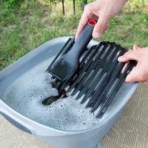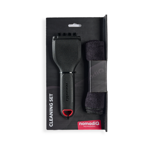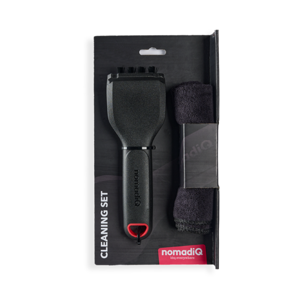 NomadiQ Portable BBQ Cleaning Kit, 2 Year Warranty. With the cleaning set developed by nomadiQ, you can easily clean the nomadiQ BBQ. The difficult corners are also easy to reach with the brush. The corners of the cleaning brush fit exactly on the ridges of the grid, so you can easily scrape off the caked-on grease and dirt.