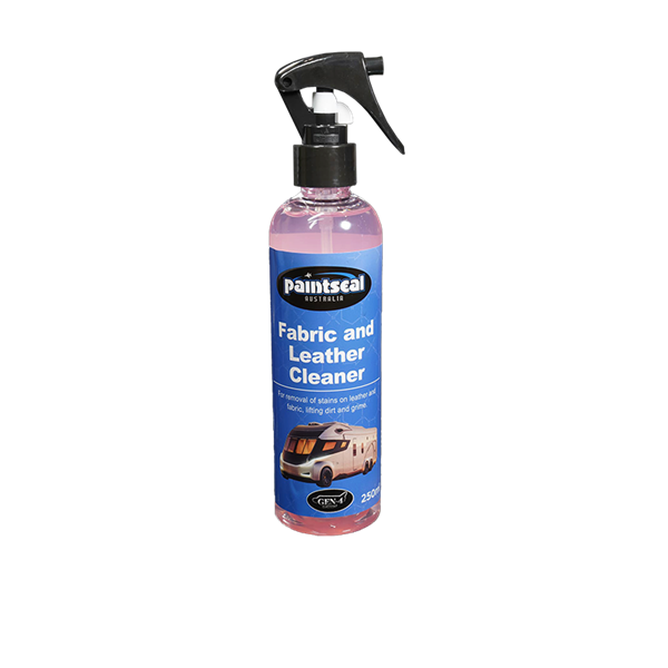 Paintseal Fabric & Leather Cleaner, 250ml, 1 Year Warranty. Keep your caravan’s fabric and leather surfaces looking brand new with this 250mL cleaner. It penetrates deeply to remove dirt, stains, and grime, leaving your interiors refreshed and protected.