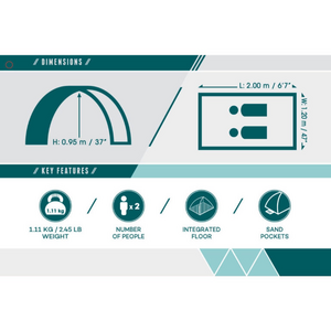 Pavillo Beach Tent, 1 Year Warranty. Basic beach tent with easy set-up design, suitable for 2 people. Something simple and convenient is sometimes all you need on your beach outing. Despite the lightweight design and small size, it has no trouble maintaining stability in most weather conditions.