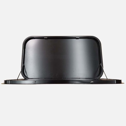 Picnic Table Black 800x450mm C/W Chrome Lock. With backing plate ., 1 Year Warranty. Quick and easy to install on fibreglass or aluminium cladded vans, it features powder coated stainless steel hinges, full size backing plate, chrome locks and has a whopping 25Kg weight rating.