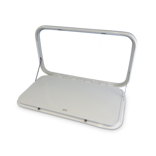 Picnic Table White 800x450mm C/W Chrome Lock. With backing plate., 1 Year Warranty. Quick and easy to install on fibreglass or aluminium cladded vans. Features powder coated stainless steel hinges, full size backing plate, chrome locks and has a 25Kg weight rating.