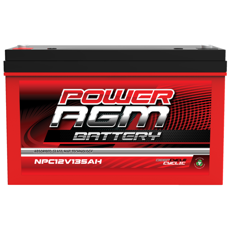 Power AGM 12V 135Ah Deep Cycle Battery, 2 Years Warranty. Keep your equipment going for longer with a Power AGM NPC12V135AH Deep Cycle 4WD & Marine Battery – built tough and reliable to withstand the harshest conditions. The Power AGM Sealed Deep Cycle Battery has a wide range of uses. It is ideally suited to electric vehicles, recreation activities such as your caravan or RV, and for use in motorcycles too. Power AGM batteries are also fantastic for your forklifts, quad bikes, boat, jet ski and other all terrain vehicles (ATVs).