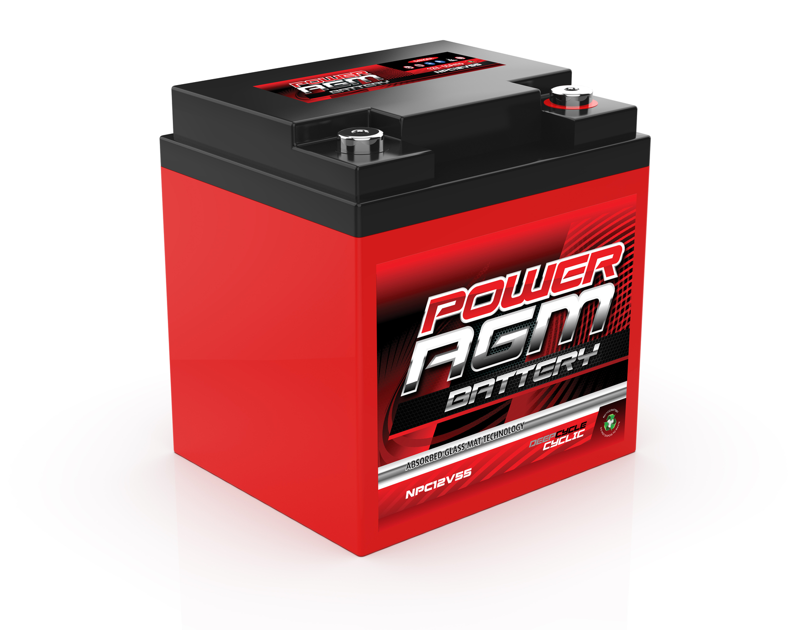 Power AGM 12V 55Ah Deep Cycle Battery, 2 Years Warranty. Power AGM NPC12V55AH Deep cycle 4WD & Marine Battery – built tough and reliable to withstand the harshest conditions. The Power AGM Sealed Deep Cycle Battery has a wide range of uses. It is ideally suited to electric vehicles, recreation activities such as your caravan or RV, and for use in motorcycles too. Power AGM batteries are also fantastic for your forklifts, quad bikes, boat, jet ski and other all terrain vehicles (ATVs).
