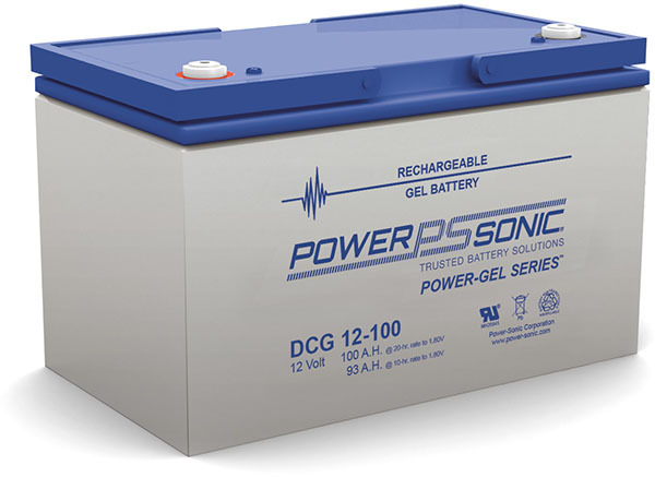 Power-Sonic 12V 100Ah Gel Deep Cycle Battery, 18 Months Warranty. The special gelled electrolyte of the Power-Sonic Deep Cycle Gel (DCG) range which is more tolerate to drying out makes them ideal for tighter space requirements and higher temperature environments and able to withstand higher levels of vibration. The unique plate design ensures greater cycle life at increased depth of discharge.