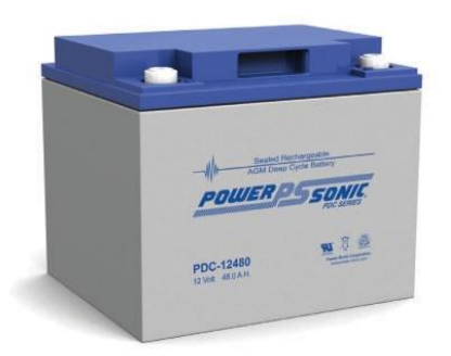 Power-Sonic 12V 48Ah AGM Deep Cycle Battery, 18 Months Warranty. Power-Sonic deep cycle PDC range is purpose built for those applications which require regular and consistent cycling (charge and dis-charge). Commonly called deep cycling the oversized negative plates and a specialised paste formulation of the PDC can provide constant power for longer periods of time without shortening the life of the battery.
