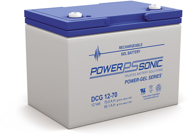 Power-Sonic 12V 70Ah Gel Deep Cycle Battery, 18 Months Warranty. The special gelled electrolyte of the Power-Sonic Deep Cycle Gel (DCG) range which is more tolerate to drying out makes them ideal for tighter space requirements and higher temperature environments and able to withstand higher levels of vibration. The unique plate design ensures greater cycle life at increased depth of discharge.