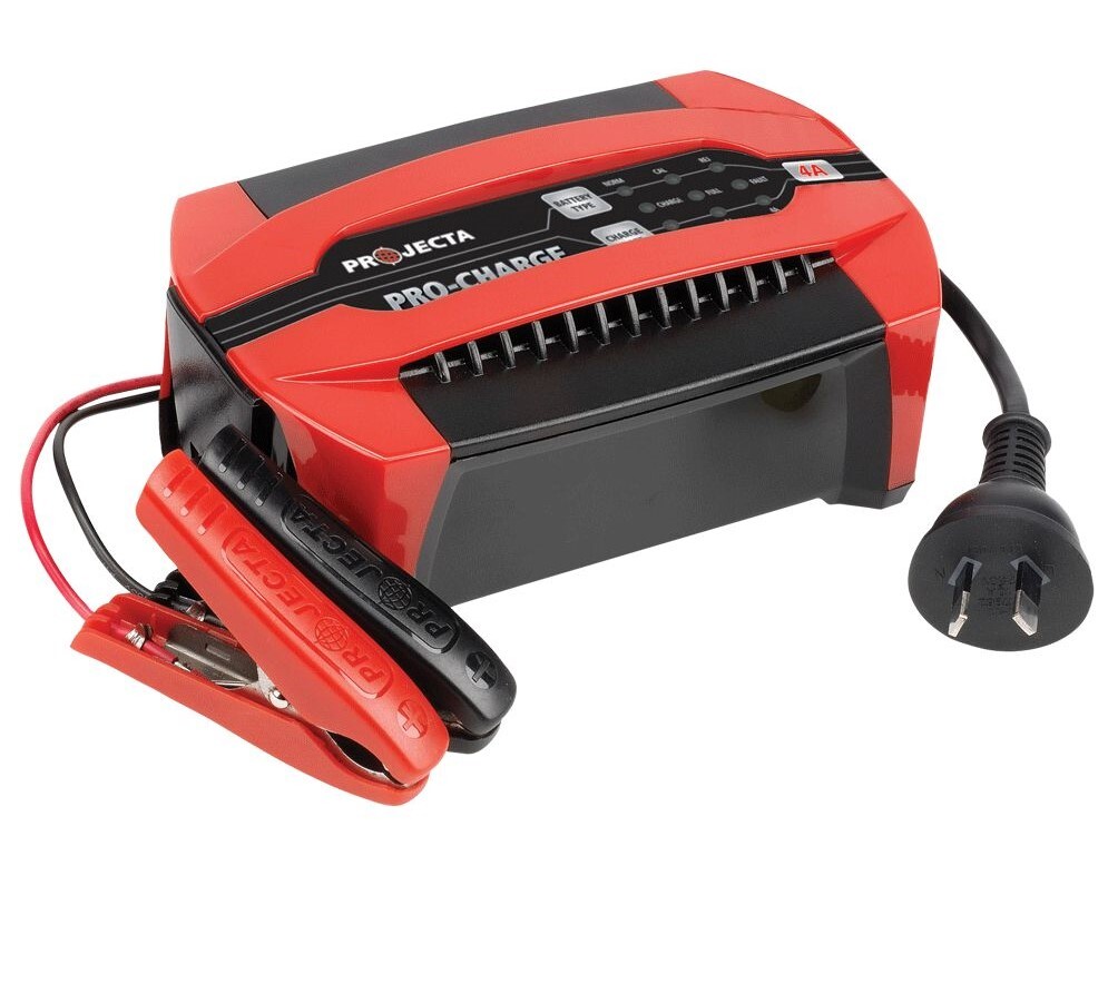 Projecta 12V Automatic 4A 6 Stage Battery Charger, 1 Year Warranty. Ideal for the home professional wanting a charger for a range of charging applications, eg. motorbike, jet ski, small passenger vehicles.