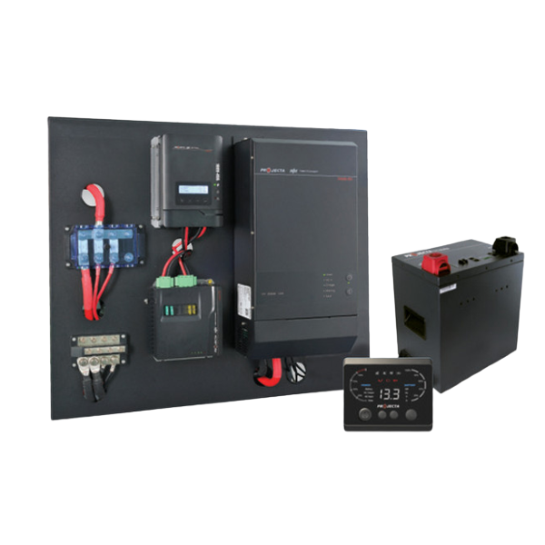 Projecta 2000W Mobile Power System with Bluetooth Monitor & 200Ah Lithium Battery, 5 Year Warranty. High powered solution for mobile power featuring 2000W inverter/charger, MPPT solar controller, DCDC charger with an easy to read Bluetooth display.