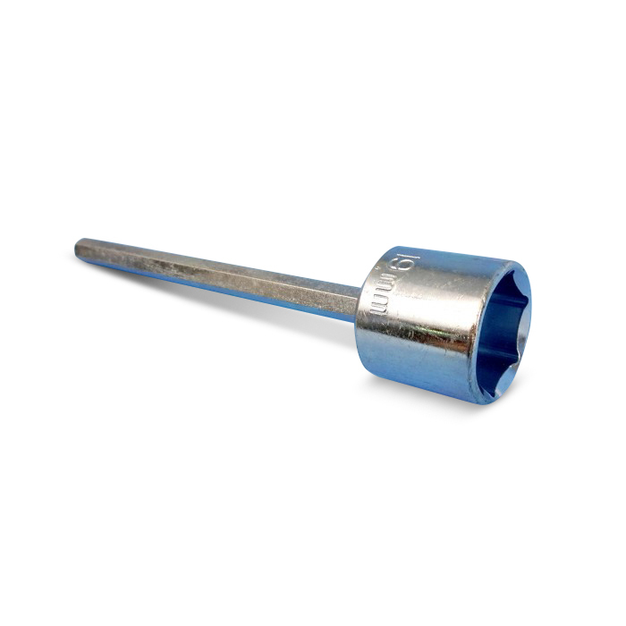 Purpleline Kojack Extension Socket. 88H-KJES, 2 Year Warranty. A 19mm socket that fits into a rechargeable drill, this allows rapid adjustment to kojack levellers or corner steadies with 19mm nut ends. Saving your back from doing the hard work.