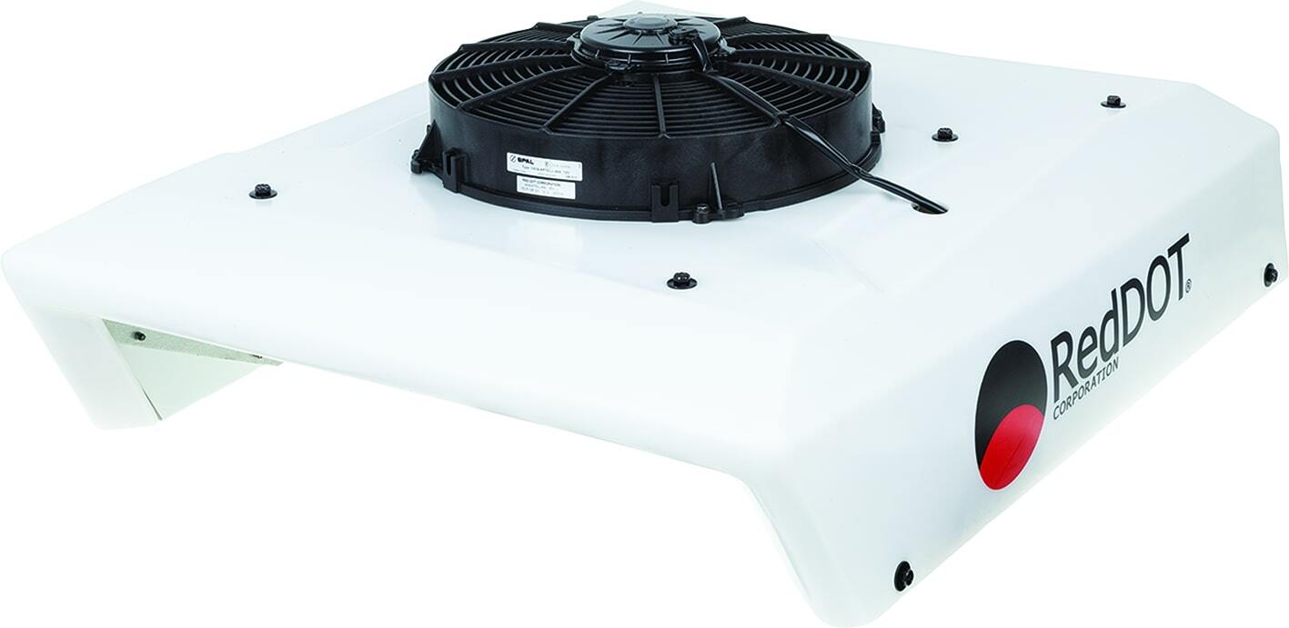 RedDot 24V Electric Rooftop Truck Air Conditioner Unit, 1 Year Warranty. Suited for use in on-highway heavy duty, pneumatic tyred construction, agricultural and light duty mining vehicles. These electric rooftop units offer a fully self-contained solution alternative to off engine drive versions. With no need for an external compressor or hose runs the unit only requires power, earth and a drain tube