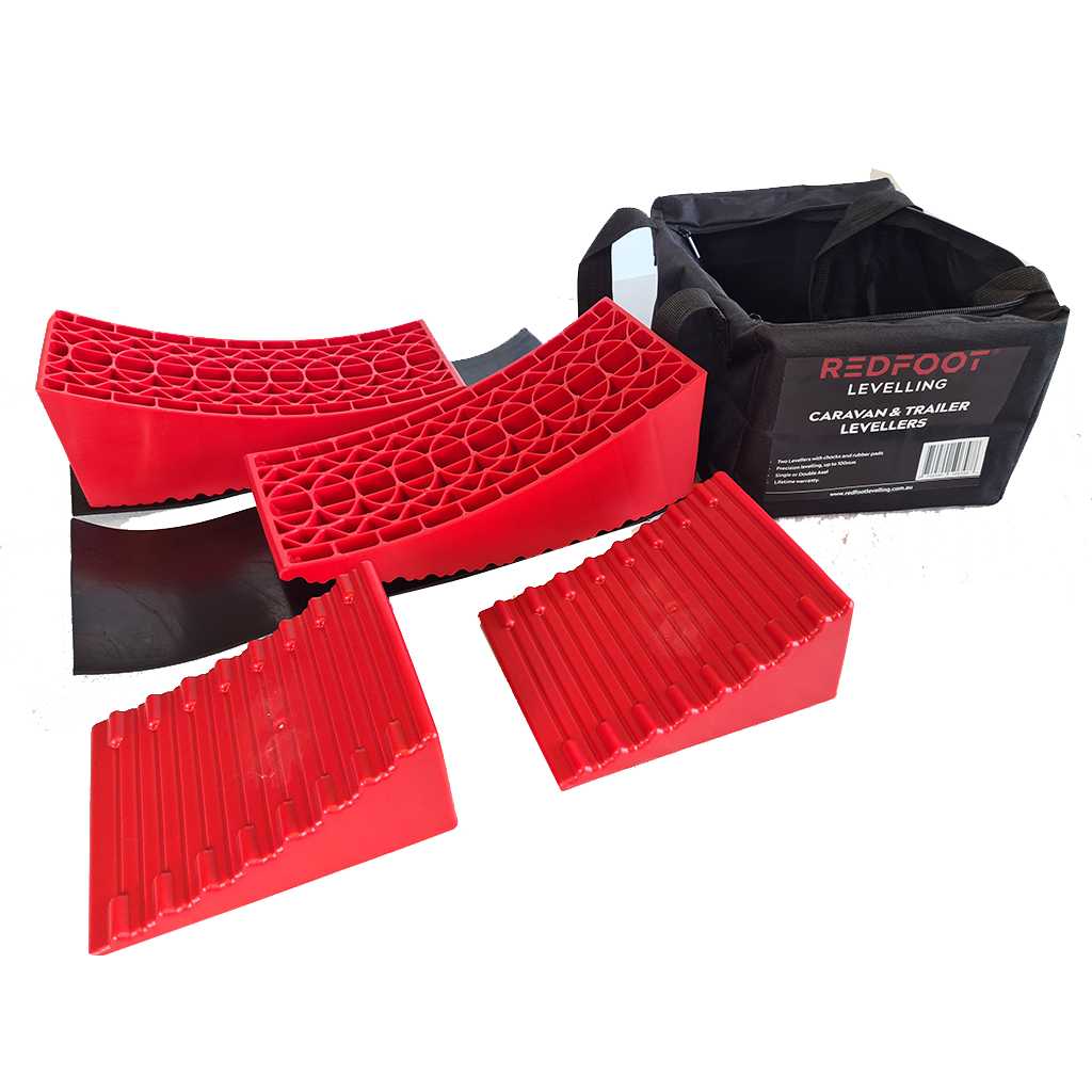 Redfoot Levelling Camper Levellers, Lifetime Warranty. When quality and performance matters while levelling your Caravan or Motorhome, the Redfoot Levelling Camper Levellers is your only choice you can rely on. With its compact size and huge load capacity makes it best solution for quick fast levelling. With its superior design and super strong, light weight construction the Redfoot Levelling Camper Levellers are the only levellers you will ever need. The Redfoot Camper Levellers suit our harshest environments and can resist dirt, dust, mud, oil and are easy to clean, just run under water and simply wipe down with a dry cloth. Backed with a Lifetime Warranty you will wonder why you didn’t buy one sooner.