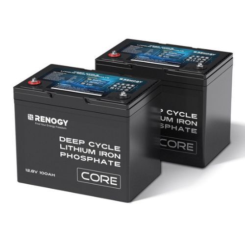 Renogy 12V 2 x 100Ah Core Series Deep Cycle Lithium Iron Phosphate Battery, Twin Pack, 5 Year Warranty. Meet Renogy 12V 100Ah Core Series Battery, your trusted, one-stop solution for upgrading from Lead to Lithium. Compatible with Renogy's solar panels, solar charge controllers, and inverters, this battery delivers a seamless upgrade experience without compatibility issues.