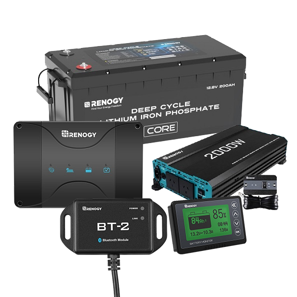 Renogy 200Ah Lithium Battery, 50A DC-DC Charger, 2000W Inverter, Bluetooth Module and 500A Renogy Battery Monitor