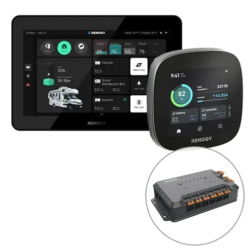 Renogy ONE Vision is a centralized power management touch panel specially designed for recreational vehicles and campervans. When working in association with Renogy ONE Core and PMS1280 Distribution Box, ONE Vision visualizes power management and control, allowing you easily to control your power supply devices and appliances. In addition, ONE Vision provides custom scene automation, local troubleshooting solutions, and online troubleshooting support under your permissions, reducing system maintenance costs while enabling a worry-free off-grid journey.
