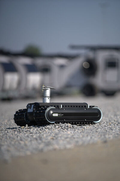 The Robot Trolley runs on different surfaces, such as grass, gravel, stones, asphalt, concrete etc. With a battery life of 30 minutes, the Robot Trolley can handle the job on site. An optional additional battery can be purchased separately, allowing you to keep one in your Robot Trolley while the other charges.